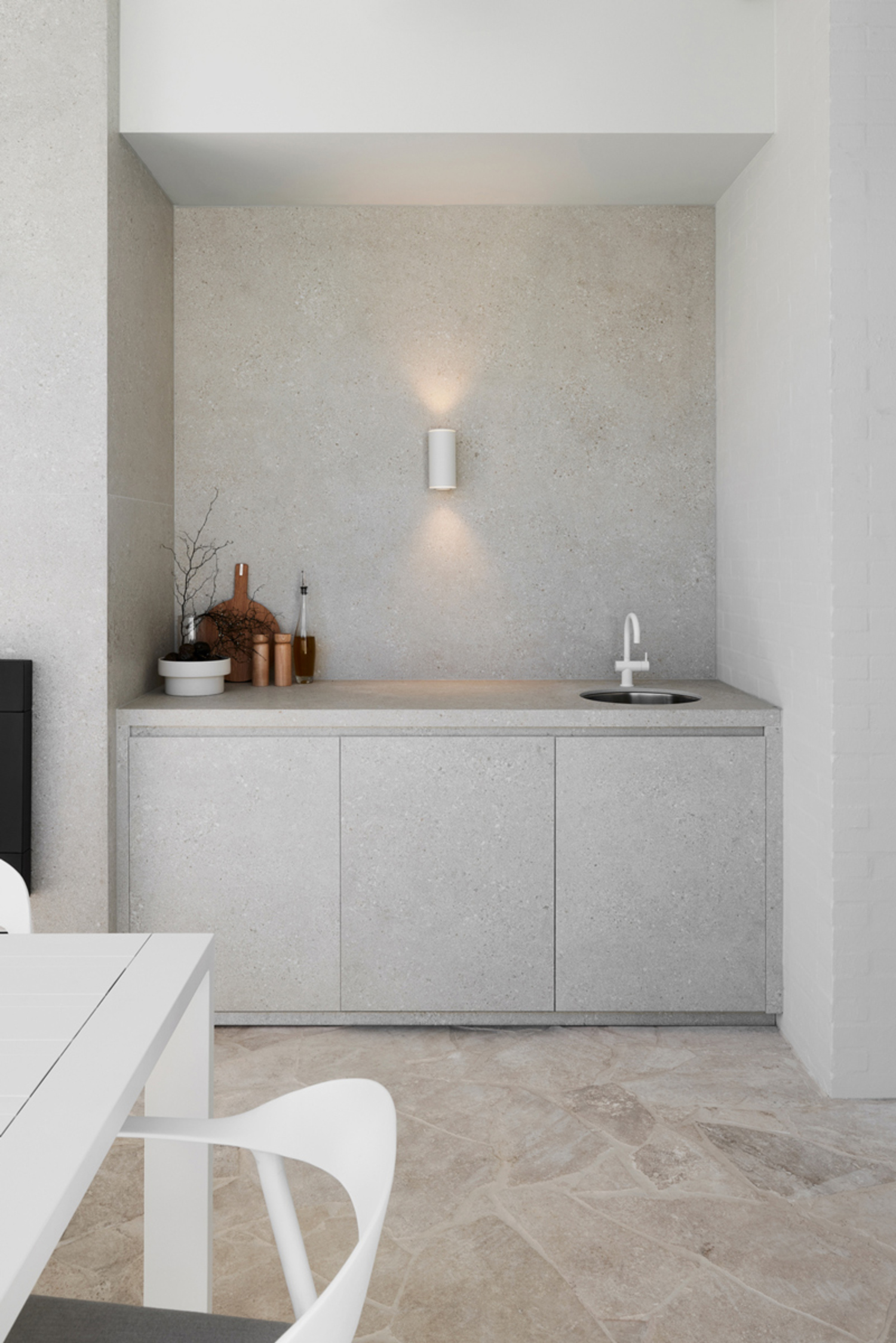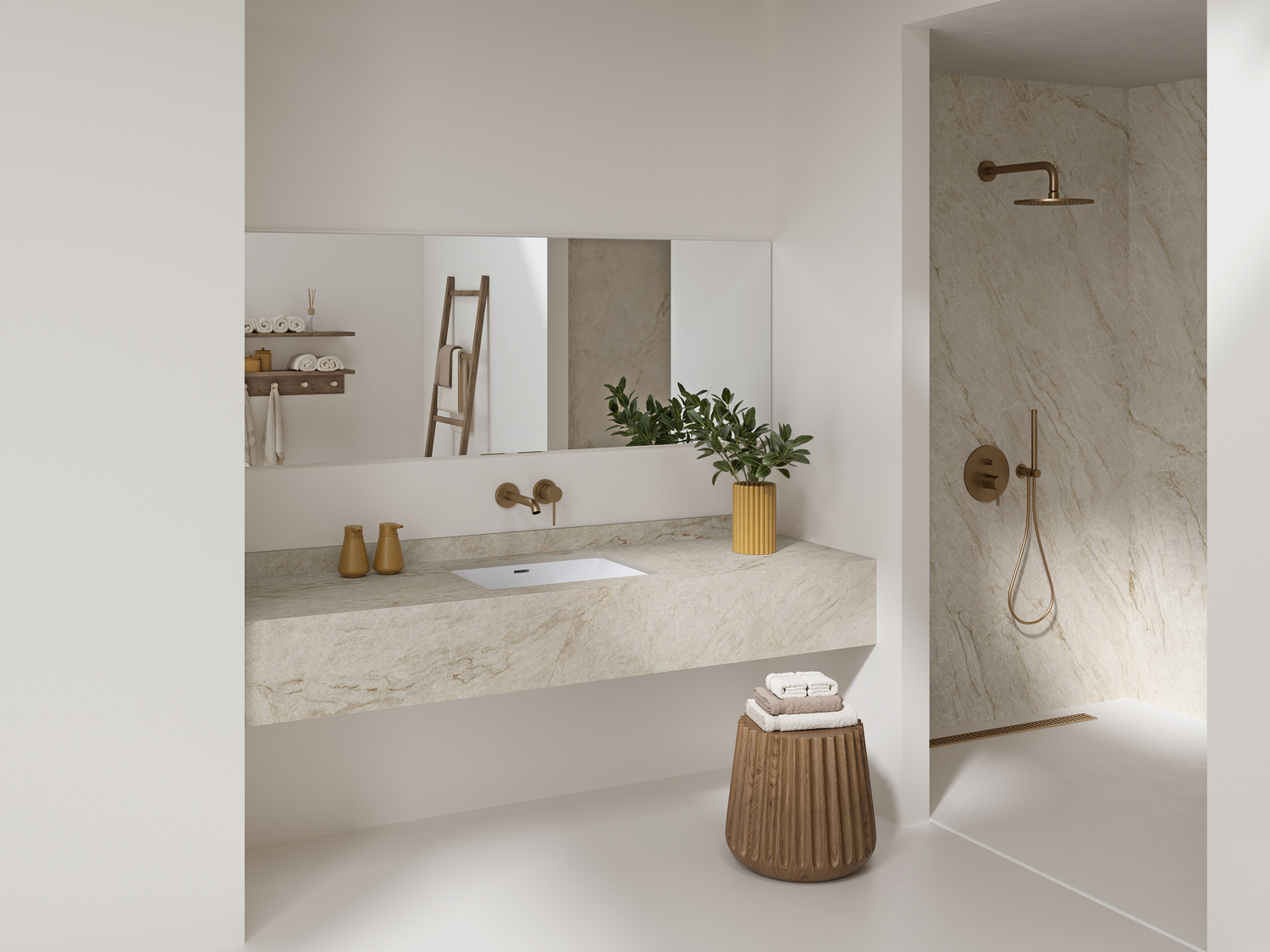 It also provides an exceptionally versatile foundation. It feels natural in minimalist interiors, Mediterranean-inspired spaces, and more organic concepts alike, integrating seamlessly with materials like wood, metal, glass, and natural stone. The result is balanced, cohesive environments designed to last.
