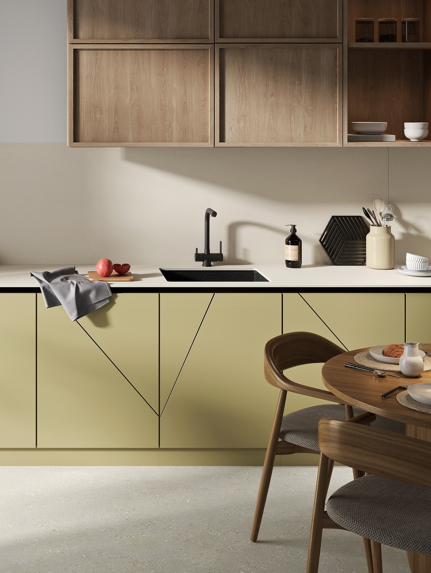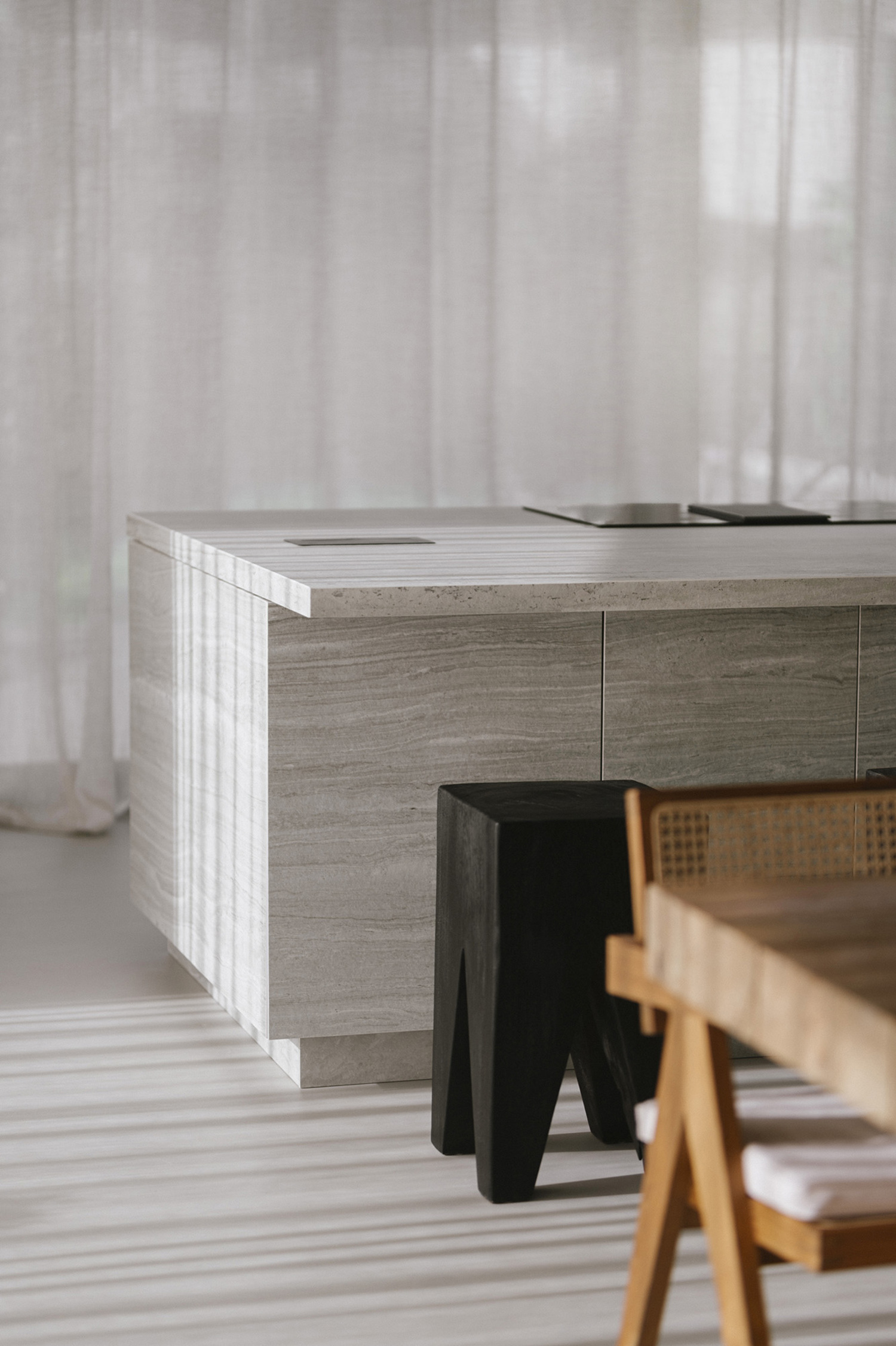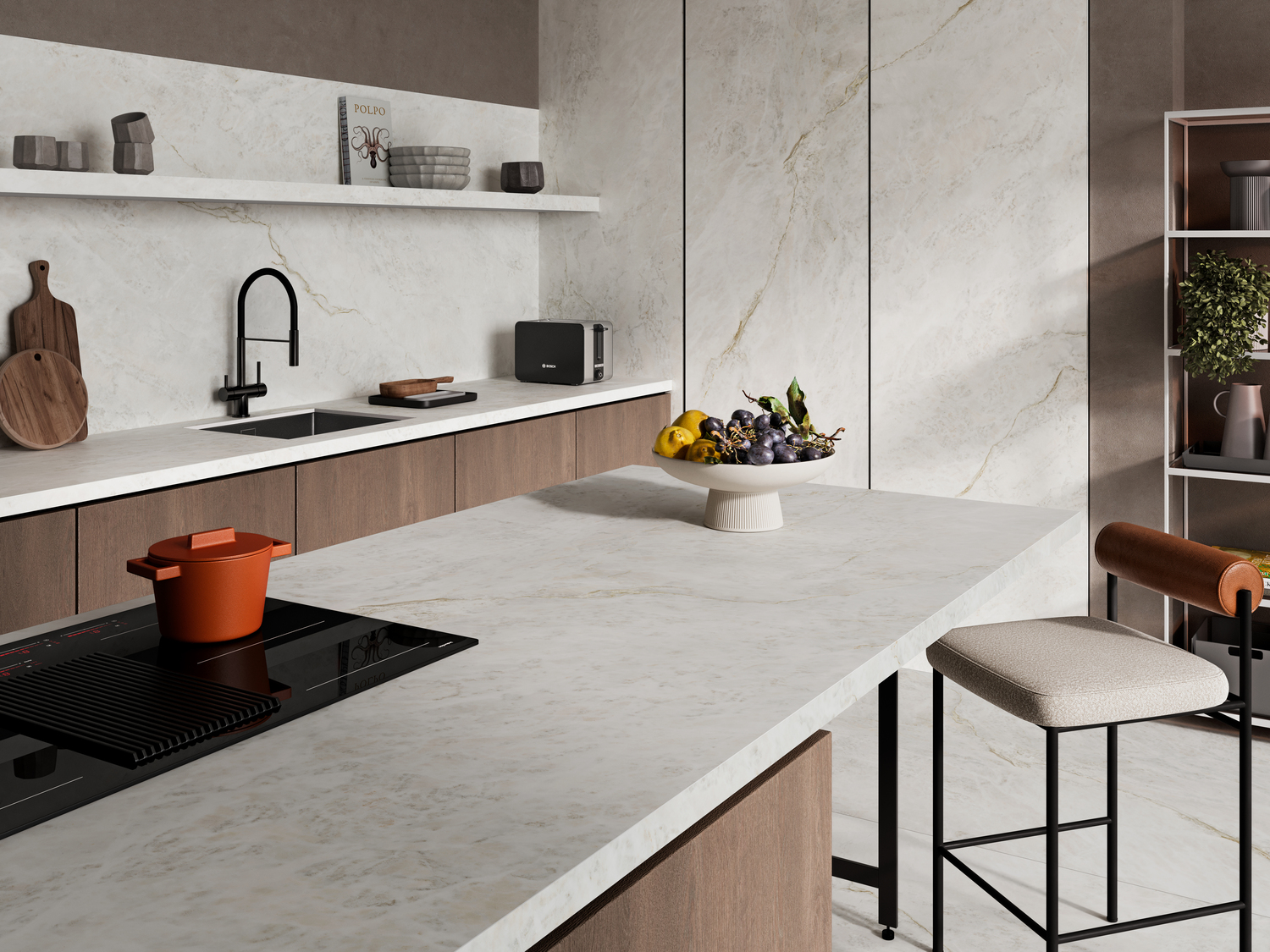 These surfaces make it possible to create elegant compositions across countertops, wall cladding, furniture, or architectural elements—adding character in a measured, intentional way.