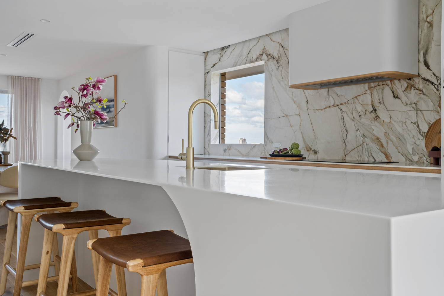 The kitchen as the centerpiece, with Neolith Calacatta Luxe as the standout feature