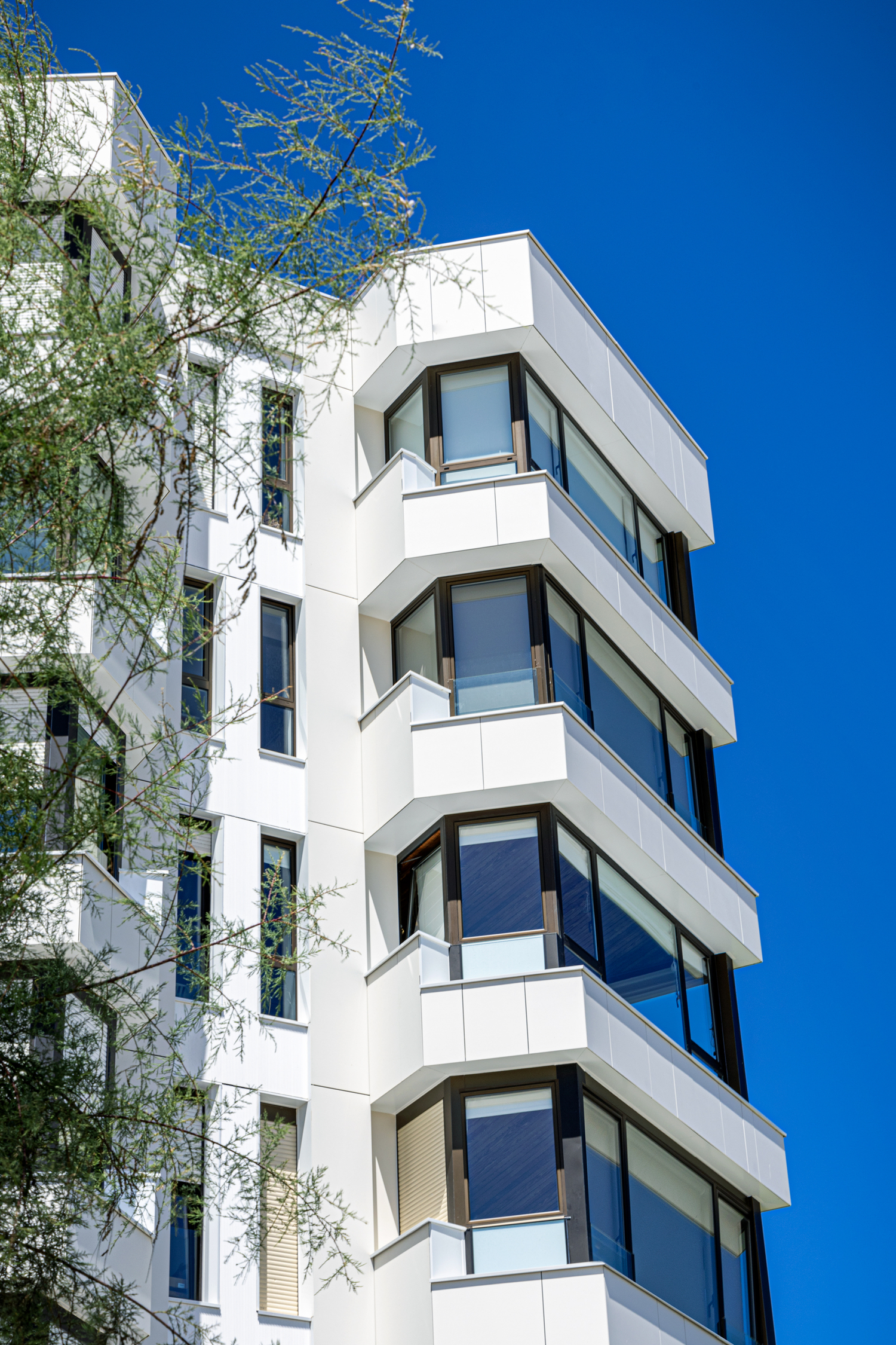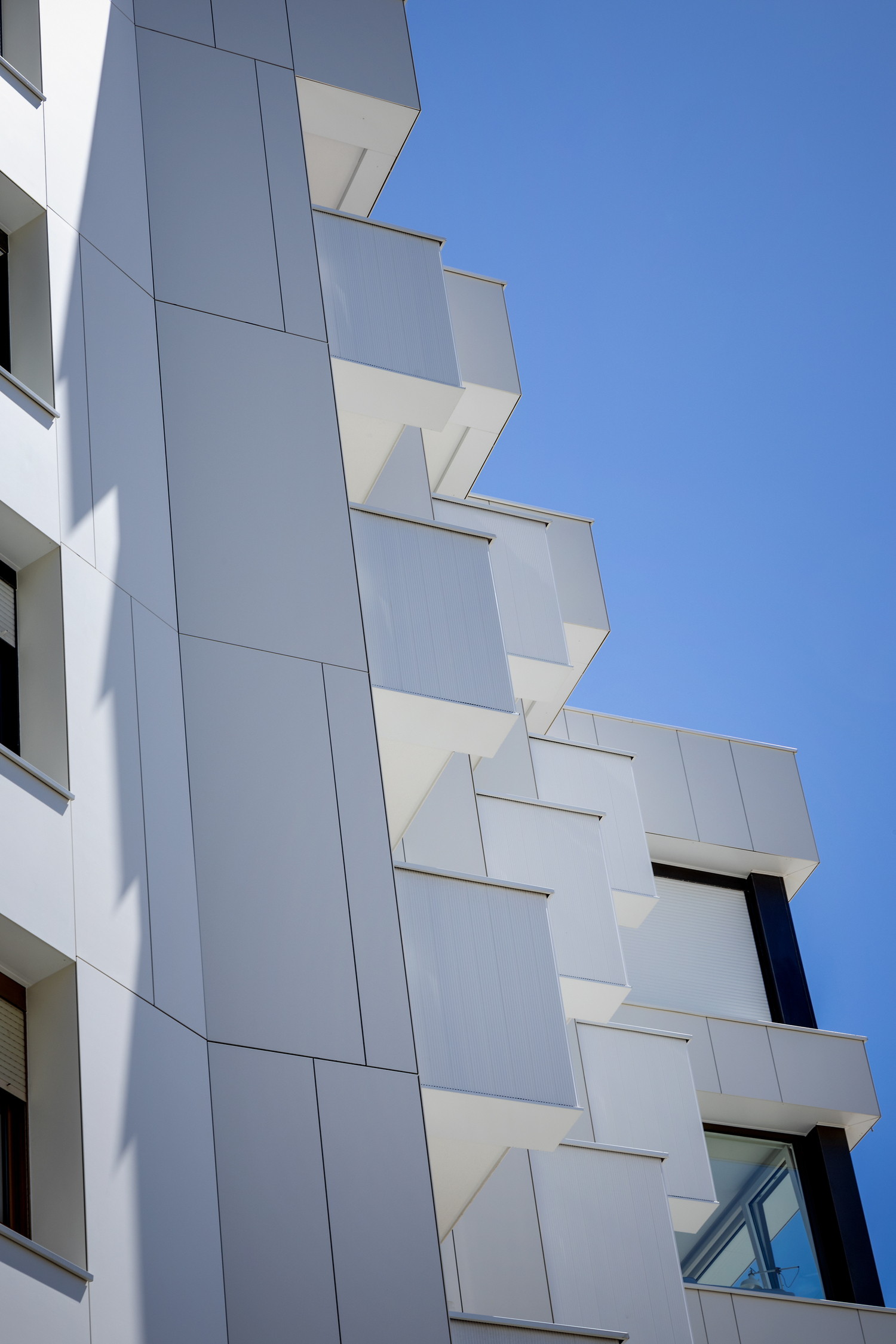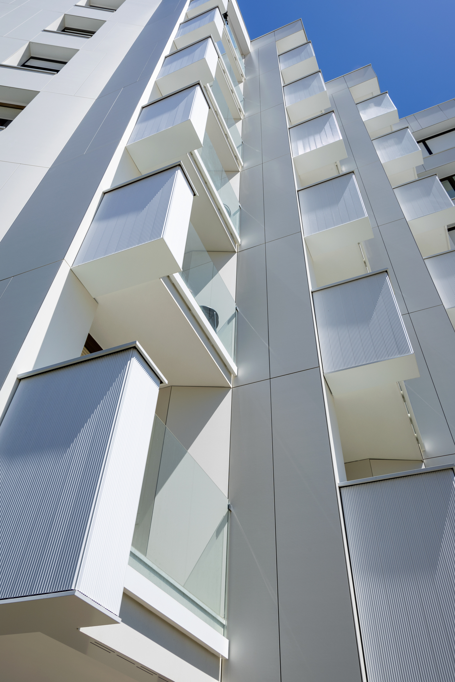On a facade with cantilevers, setbacks, and changes in plane, chemical bonding provides a high degree of dimensional control during installation, helping achieve precise alignment and a rigorous resolution of junctions and terminations.