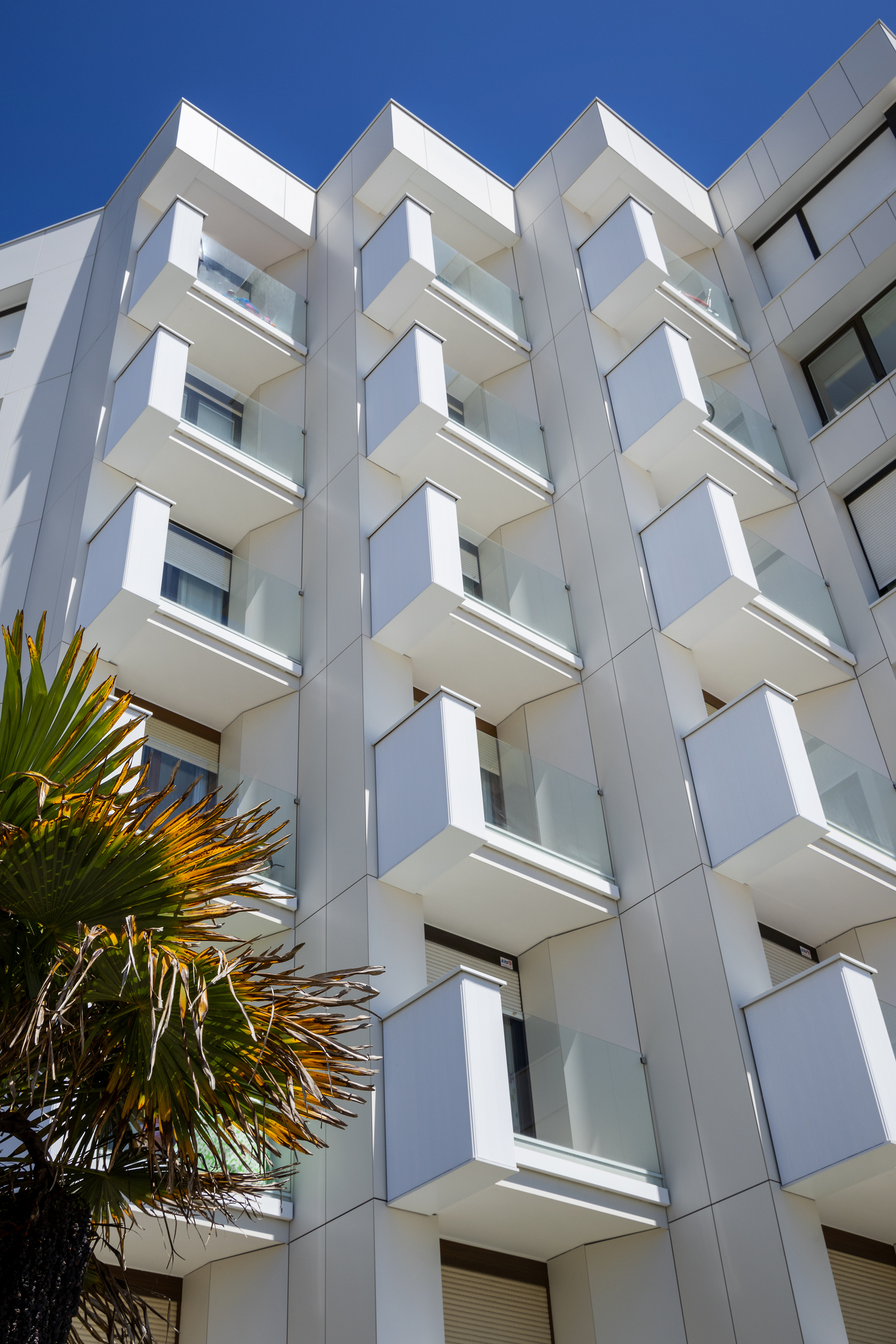 In accordance with current regulations, fire barriers were installed between floors 3 and 4, reinforcing system safety. The scope also includes new cantilevered glazed drying enclosures on the north facade, integrated within the new envelope.