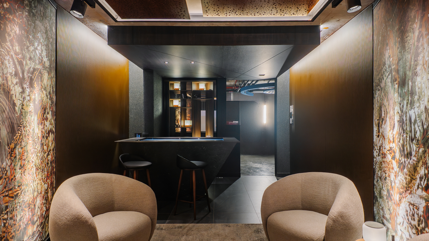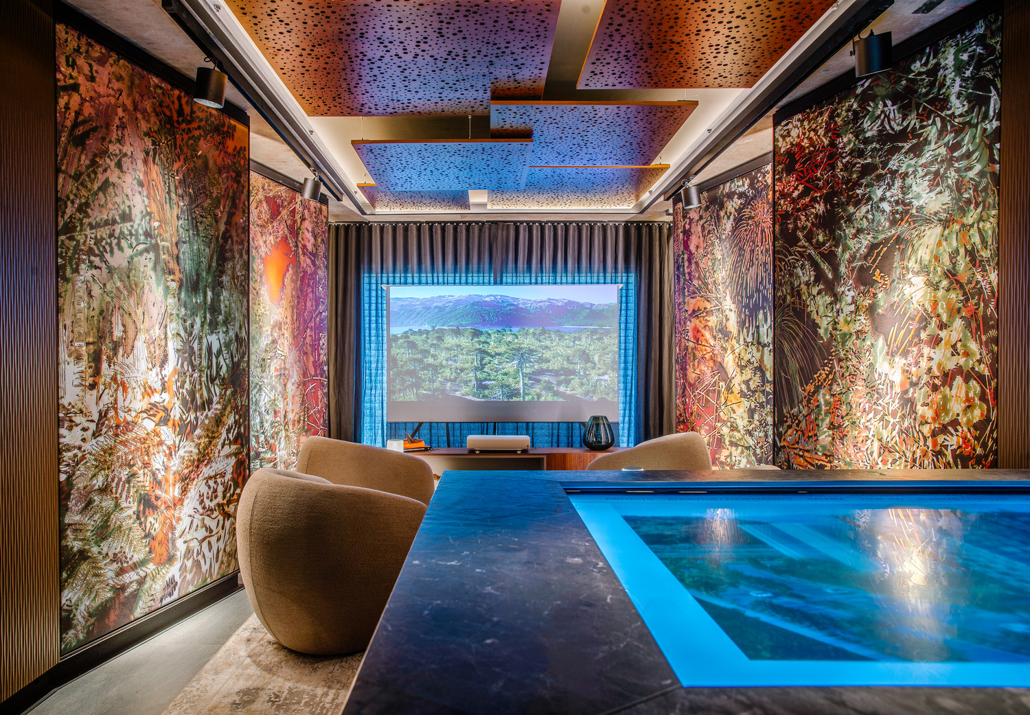 “Home Cinema Neohaus,” by Montero Toskana Design, offers a sensory journey where interior architecture is something to live, listen to, and explore. An interactive LED table and a main room wrapped in art, sound, and controlled light create a setting that speaks of the future and new ways of living with technology.