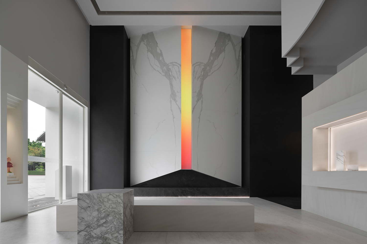 Drawing inspiration from nature, the surfaces on display authentically recreate the unparalleled textures and patterns of natural stone. This is both a tribute to the timeless beauty of nature and a commitment to craftsmanship. ZCID Cheng Chung Design took cues from these materials, transforming their essence into a spatial aesthetic through a refined, minimalist approach.