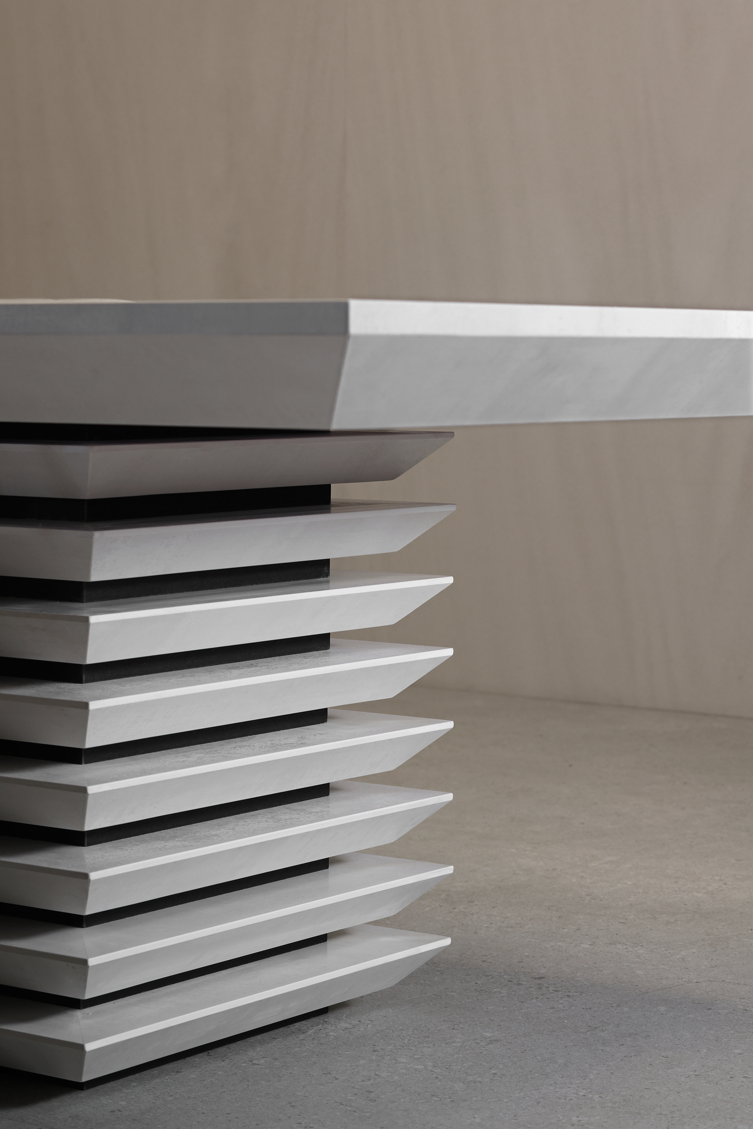 A long central table flows seamlessly into stepped seating, creating a multifunctional space where form and function merge. The casual design encourages interaction, while subtle details—like ultra-thin edges and seamless joints—showcase the precision and artistry of Techsize craftsmanship.