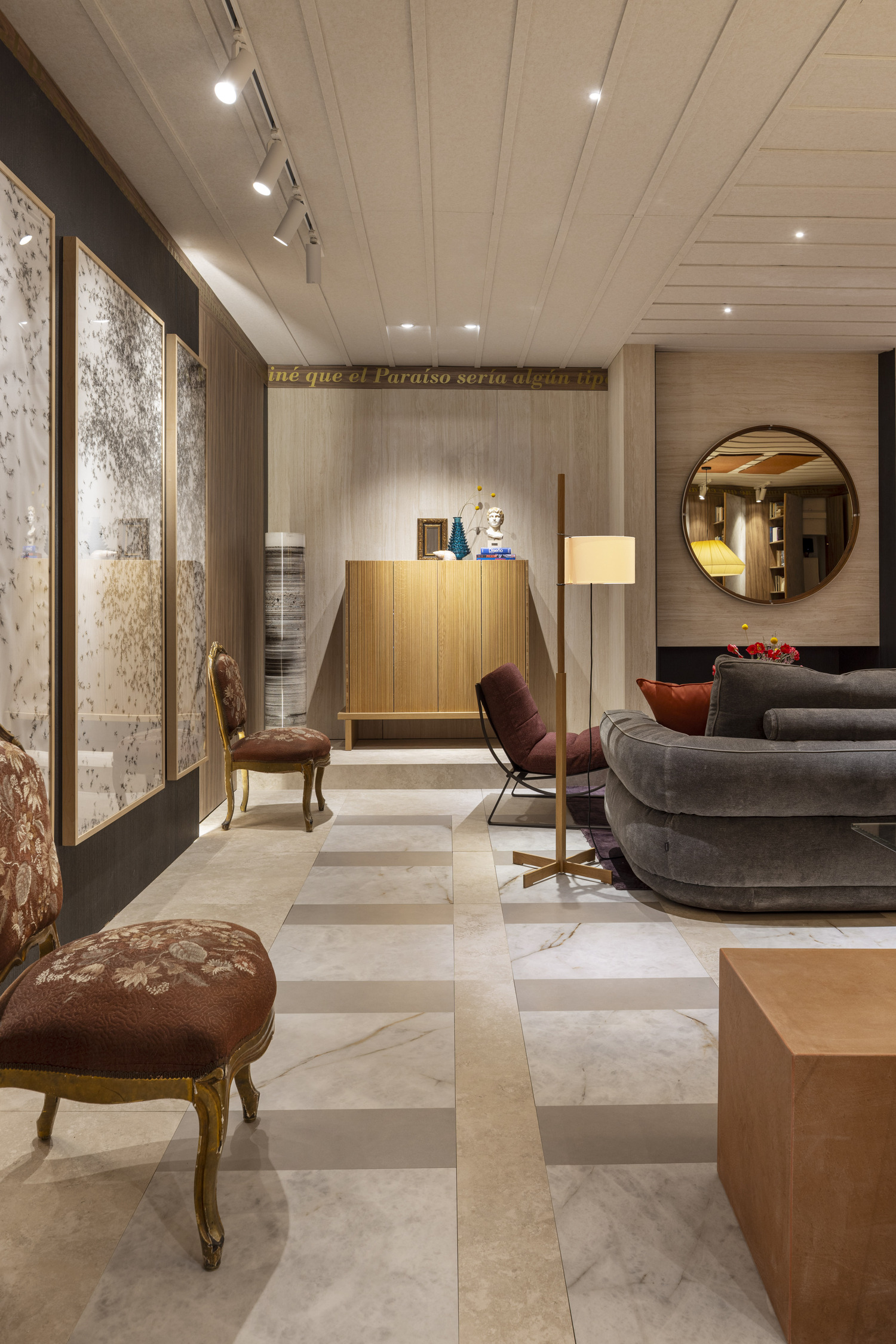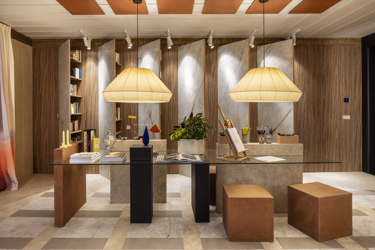 - De la mano del estudio PersonalK, Neolith presenta “Entre superficies y palabras”, un espacio concebido como un salón social y familiar que invita a quedarse, leer, pensar y compartir.