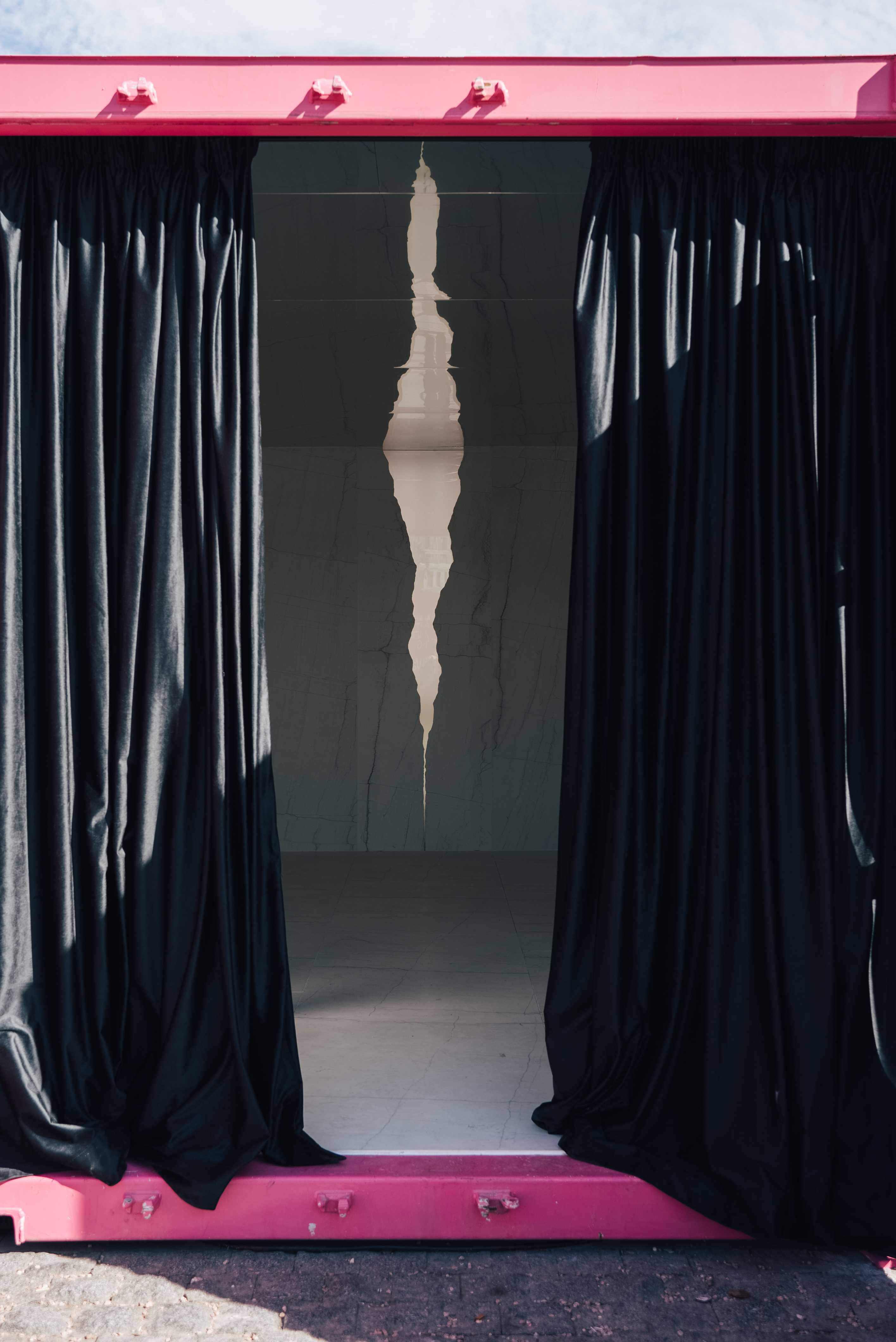 La obra, desarrollada en colaboración con el artista multidisciplinar Mario Rodríguez Echeverry, conocido como Mareo, transforma un contenedor hermético en un espacio íntimo y simbólico, pensado para ser experimentado desde la quietud. En su interior, la piedra sinterizada Neolith se convierte en un medio de exploración espiritual, donde las texturas, los reflejos y los silencios adquieren un significado profundo. En contraste con el ritmo urbano que lo rodea, Portal ofrece un instante de calma y contemplación, un refugio donde el visitante puede detenerse, observar y conectar con su propia interioridad.
