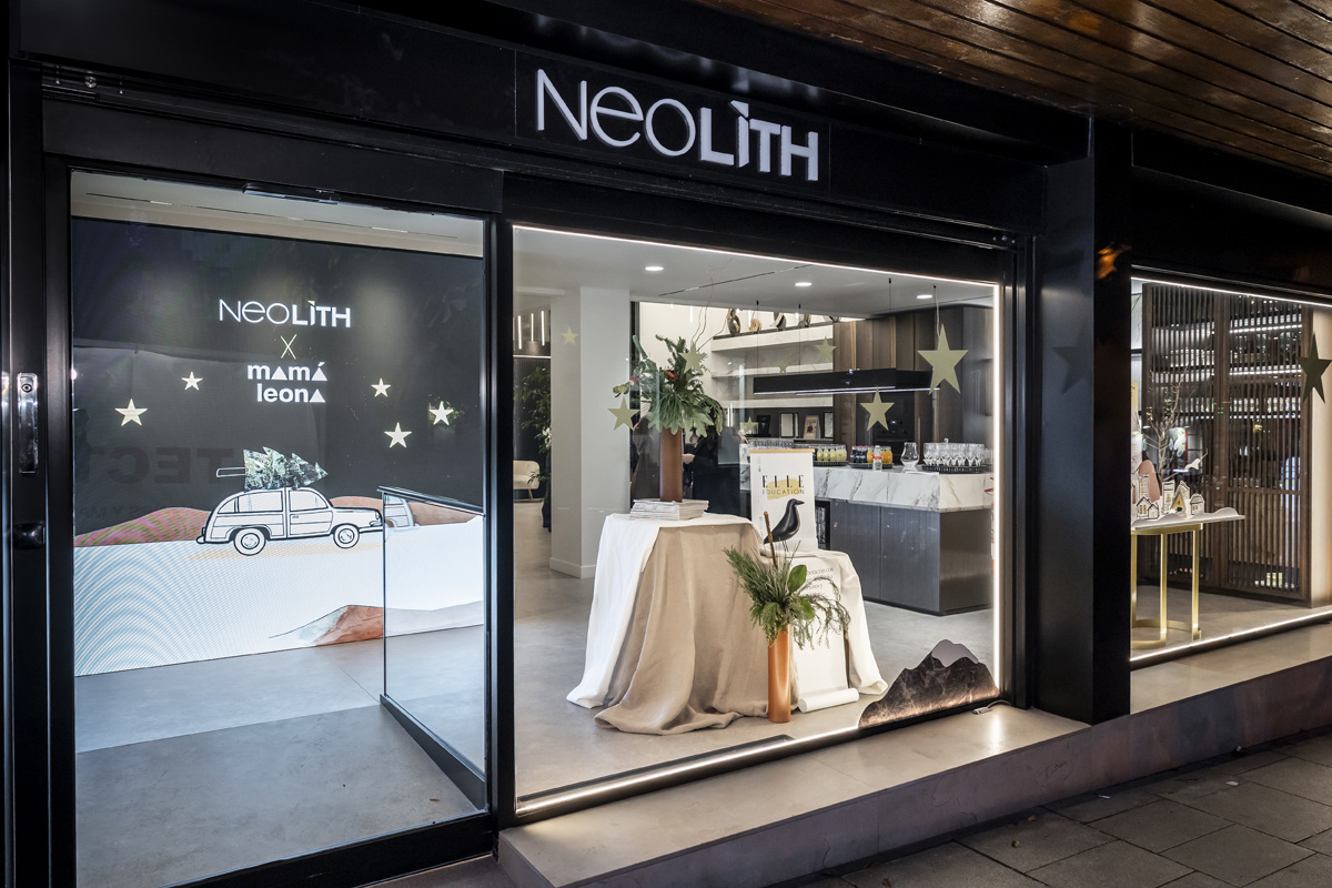 During the event, the new window display was officially presented. Designed by Ana Ruiz—creator of the custom stationery brand Mamá Leona. Lovely Parties and a current master’s student—the installation offers a contemporary and emotional reinterpretation of Christmas, fully aligned with Neolith’s values and visual identity. Reflecting on her concept, Ruiz explained: “I wanted to focus on the true feeling of Christmas—beyond gifts, dinners, and events—the sense of home and belonging.”